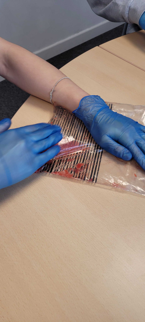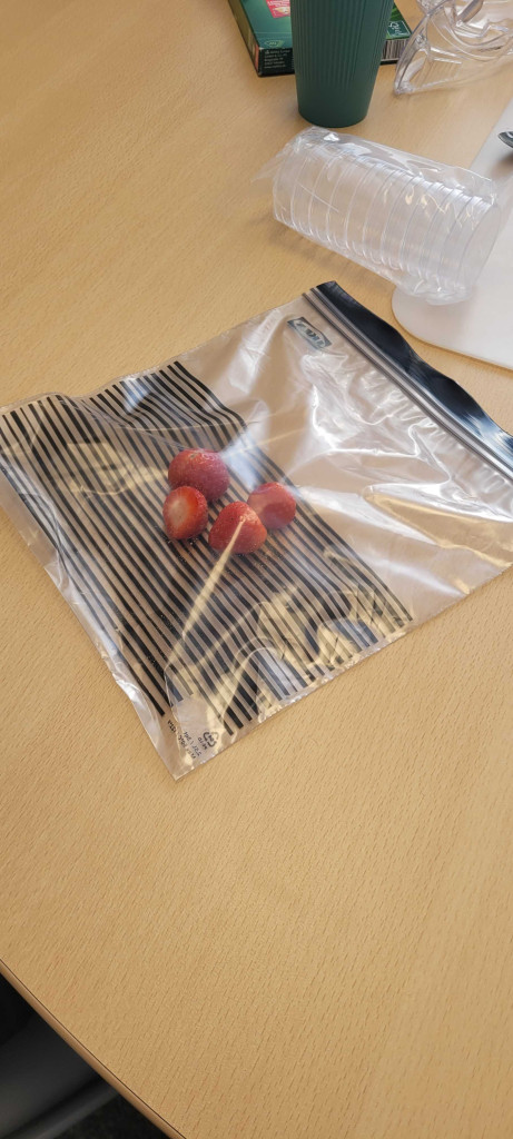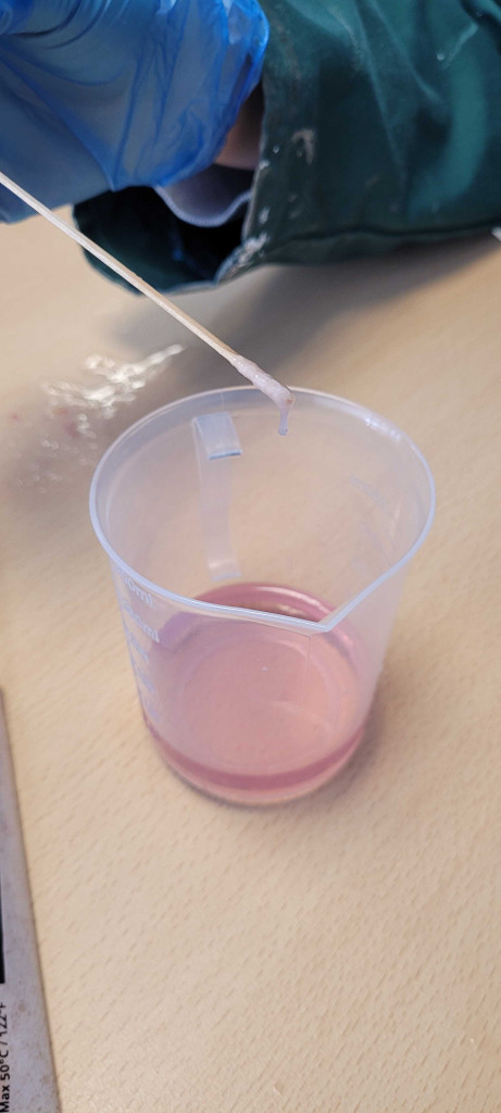 AF and DS got their lab coats out and extracted the DNA from strawberries. Making sure the appropriate safety measures were taken they carefully mixed, added, purified and observed while closely following the instructions.