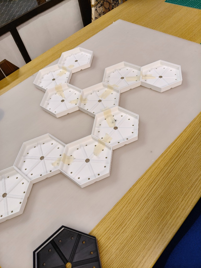 AF’s nanoleaf project is in full swing! After weeks of designing and printing individual tiles and choosing the best lights for the project, he was finally able to start putting it all together… and it’s coming out amazing!