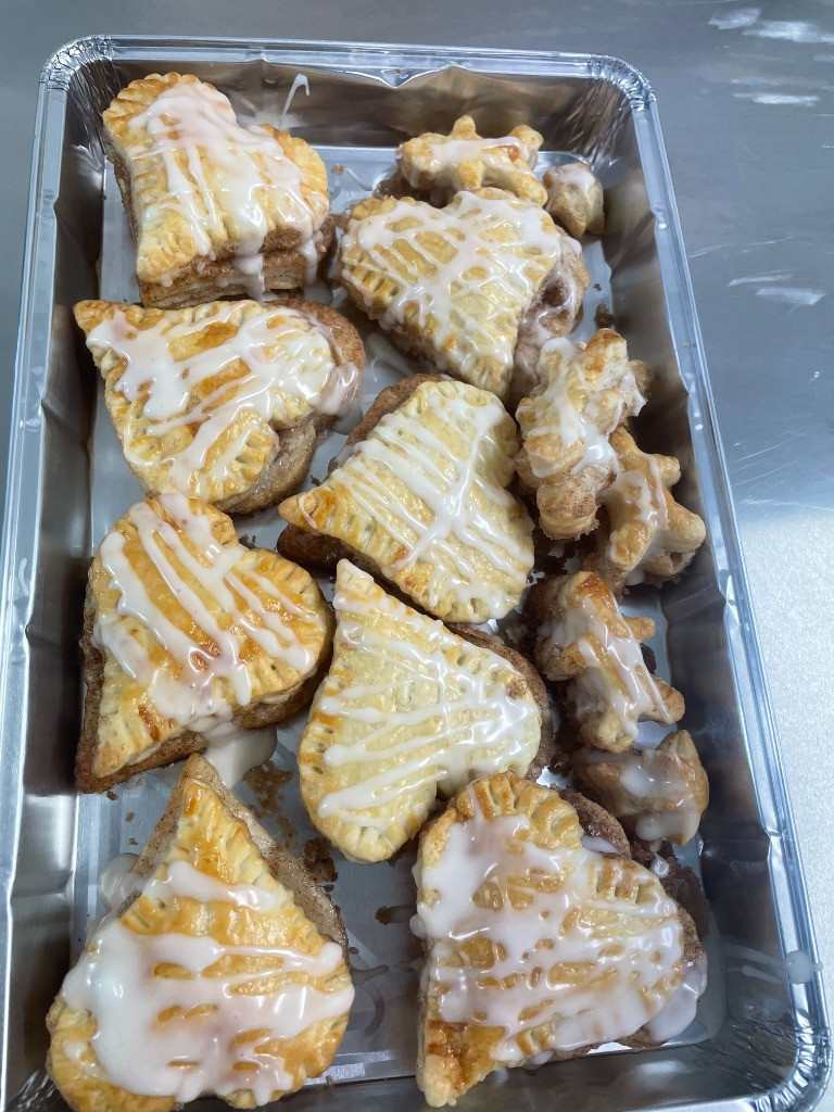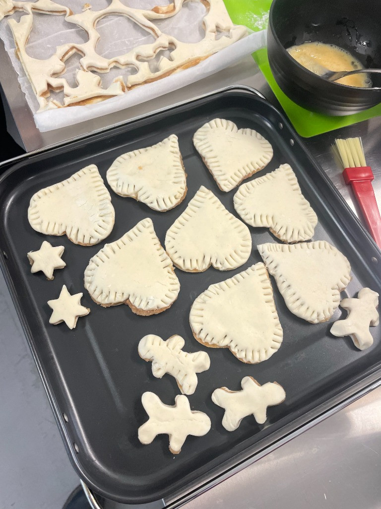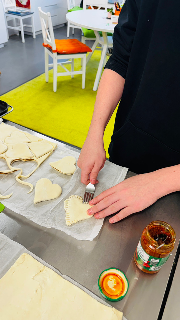 Down in the kitchen our students carefully cut, filled, crimped and cooked delicious puff pastry treats filled with either pesto and feta or cinnamon.